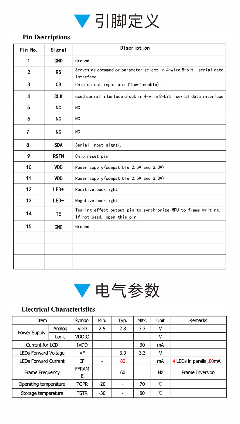 • 2.0寸tft液晶顯示屏 240x296lcd小尺寸TFT201BJ1040-15A