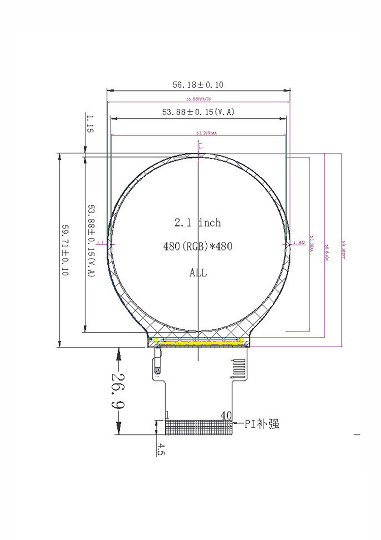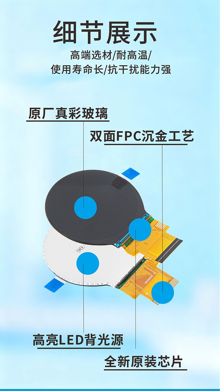 • 2.1寸圓形TFT彩屏液晶屏LCD屏彩色顯示480*480分辨率