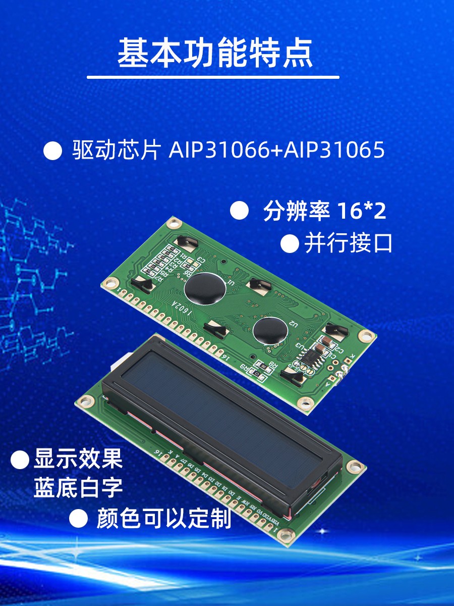• 1602點(diǎn)陣屏帶字符圖形字體顯示屏