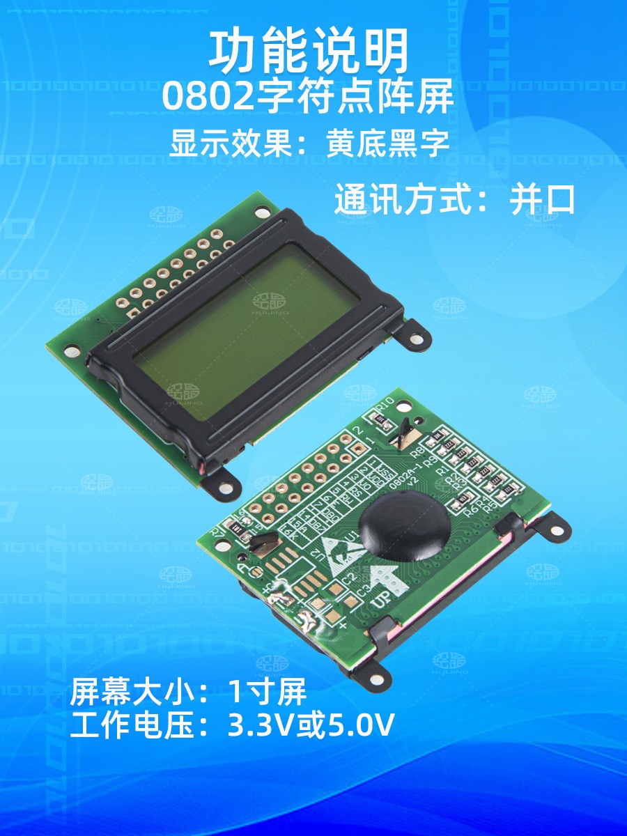0802液晶模塊可選5v和3.3v超薄黃綠屏 0802液晶模塊可選5v和3.3v超薄黃綠屏