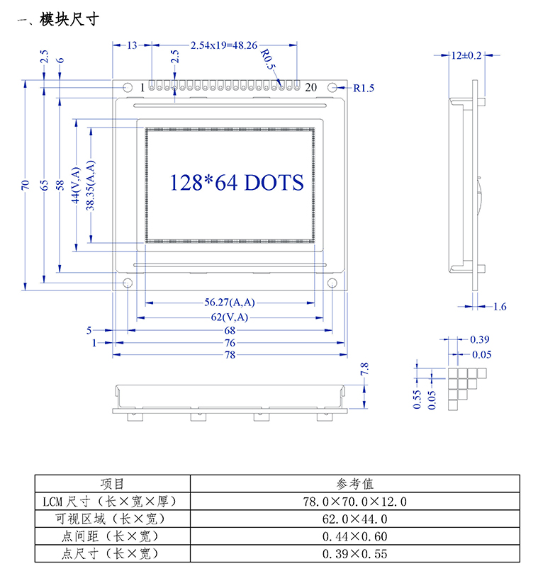 分辨率:128*64